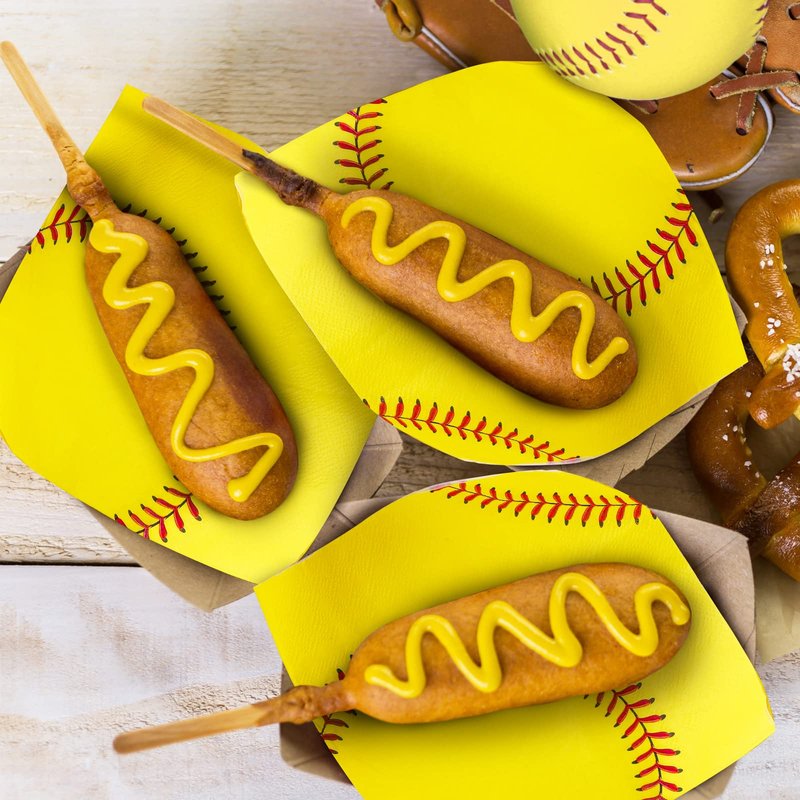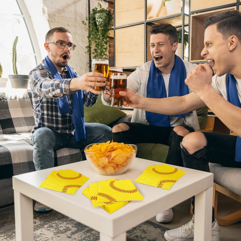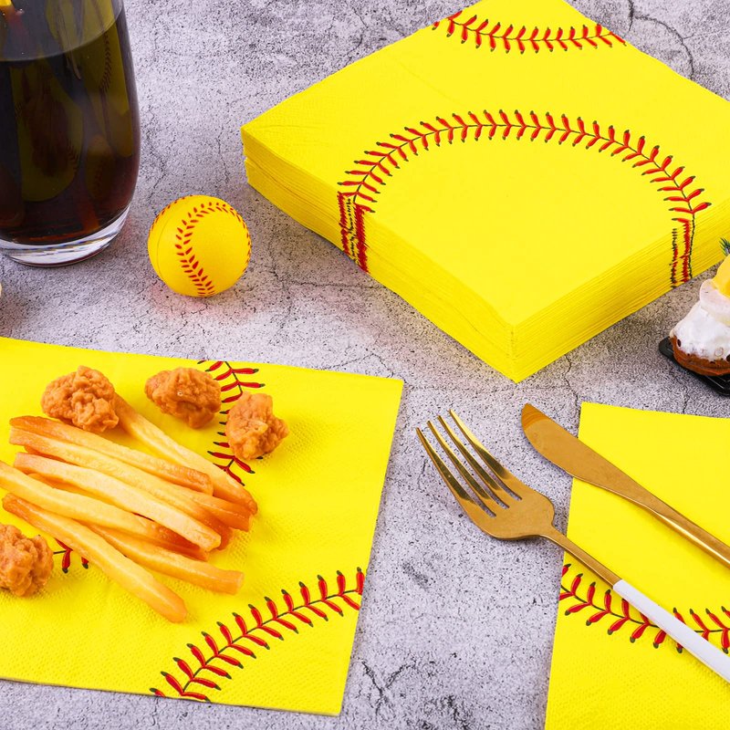ADXCO 48 Pack Softball Paper Napkins 13 x 13 Inches Softball Disposable Napkins Paper Cocktail Napkins Sports Themed Party Napkins for Birthday Party, Softball Theme Party Supplies