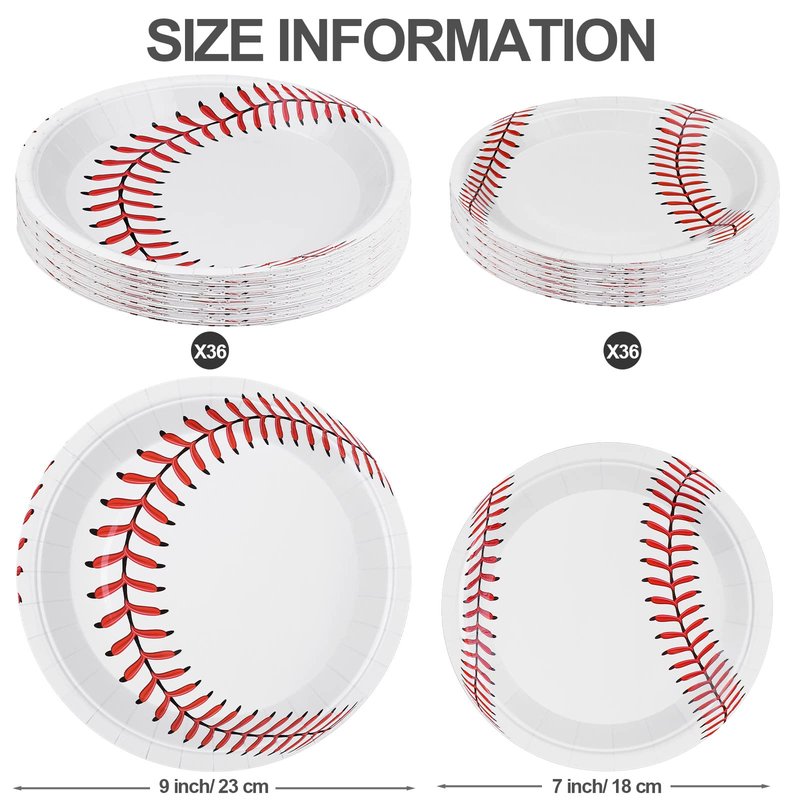 - Proper sizes: you will receive these baseball plates in 2 different sizes, including 36 packs of baseball plates in 7 inches/18 cm, and 36 packs of baseball plates in 9 inches/23 cm, reasonable in size, practical and portable
