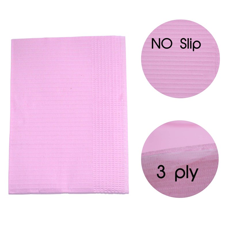 AebDerp 125Pcs Disposable Nail Art Tattoo Paper Towels Table Mat, 3-Ply Waterproof Tattoo Bibs Sheets Nail Desk Mat, Tattooing Tablecloth Pads Tray Covers, Nail Napkins for Nail Salon Supplies (Pink)