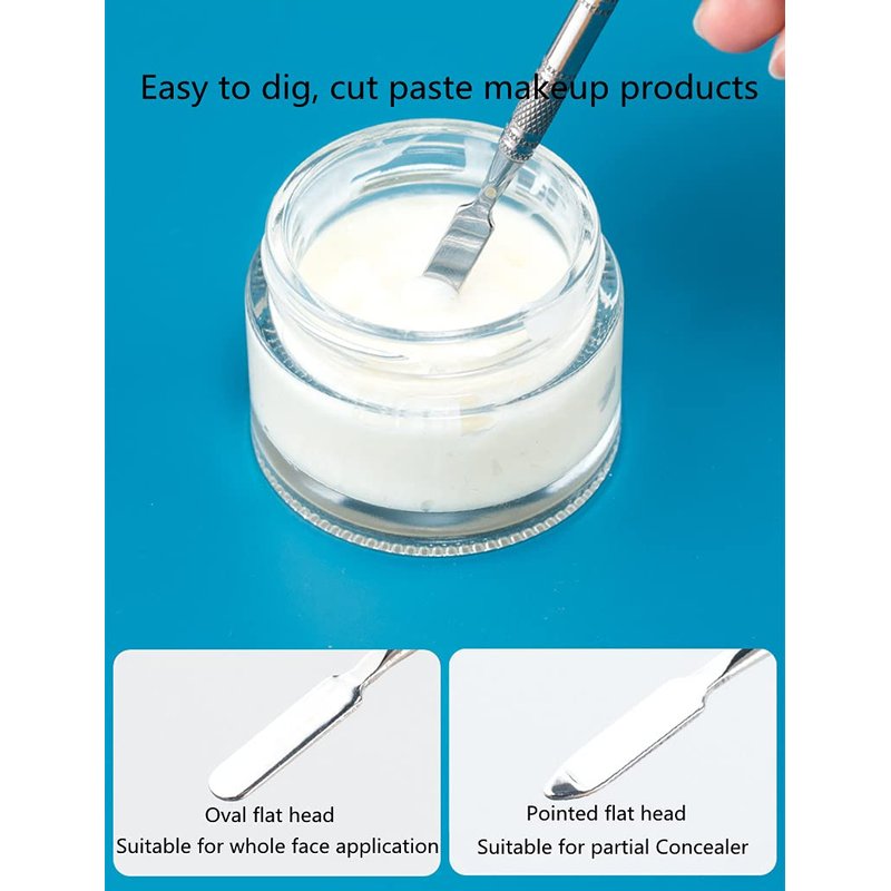 - 💄Great for Both Professional use or household use, the palette is made of hight quality stainless steel, 2-ended spatula, help get the product out of the container, more easily and sanitary, as well as avoid waste.