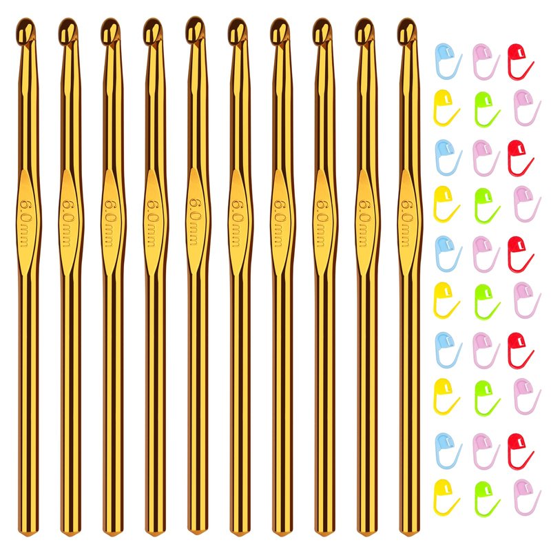 Aeelike 10pcs Size J / 6.0mm Crochet Hooks,Aluminum Crochet Needles and 30pcs Stitch Markers for Beginner and Advanced, Crocher Hook Set for Learning How to Crochet