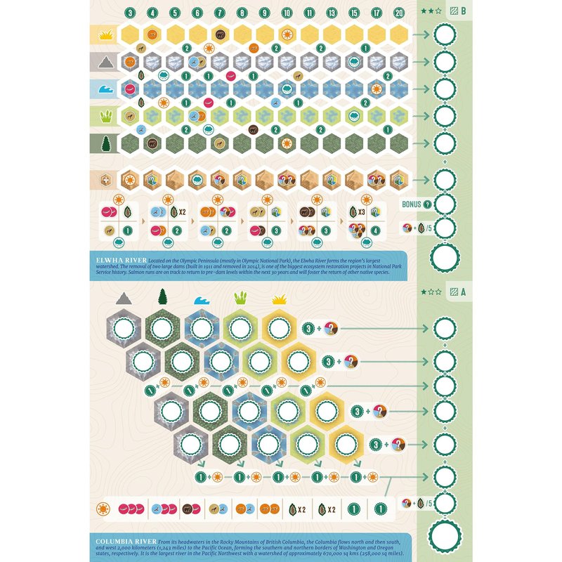 AEG & FlatOut Games | Cascadia:Rolling Rivers Roll & Write Puzzly Dice Game | Explore The Pacific Northwest, Build Ecosystems | Ages 10+ | 1-4 Players
