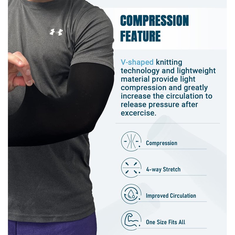 - Breathable and Comfortable Fabric - Premium breathable fabric with seamless sewing technique snugs lightly on your arms like a second set of skin, soft and lightweight. V-shaped knitting technology on lower arms provides light compression and greatly increases the circulation to release pressure during exercise.