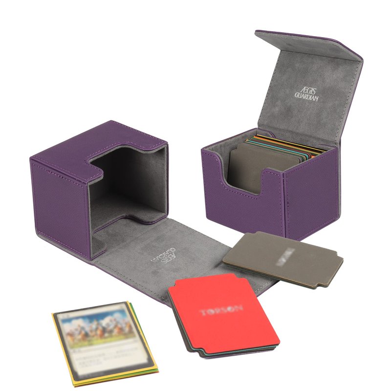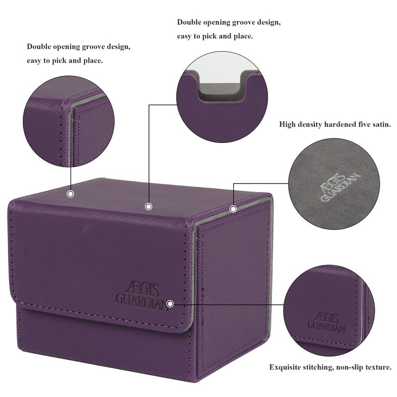 ÆGIS GUARDIAN DECK BOX Made for gamers Super large capacity convenient card storage box Strong Magnetic Closure Two high-strength magnets keep the card holder secure during transportation. Even when fully loaded and turned upside down, the deck box stays shut tight.
