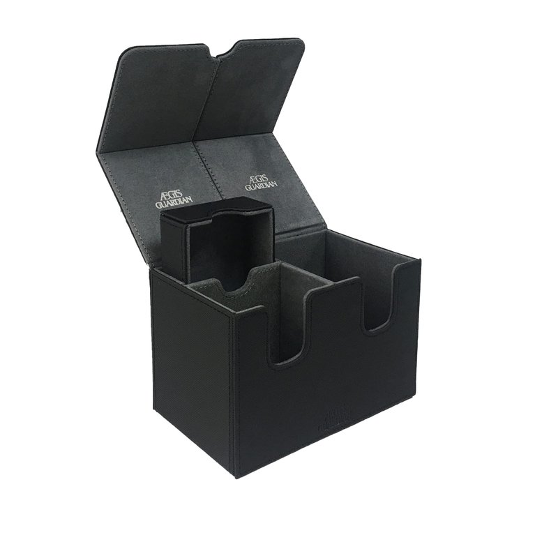 AEGIS GUARDIAN Card Deck Box with Dice Tray for MTG Cards Commander Deck Box Hold 150+ Sleeved Cards, PU Leather Strong Magnet Deck Box Deck Game Case Card Storage Box for TCG CCG, Black