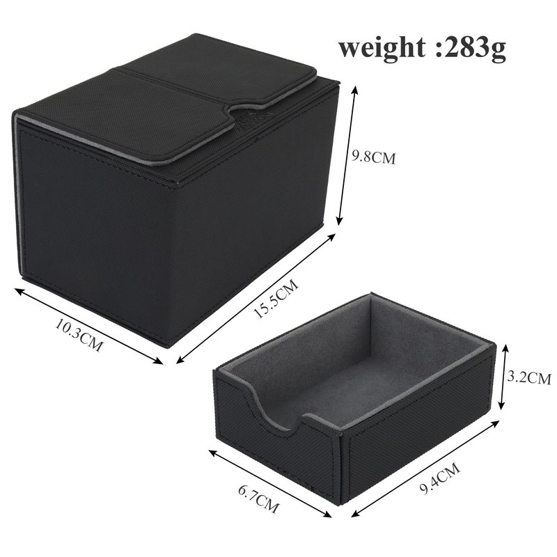 - Large Capacity - The card deck box has 2 card boxes and 1 drawer that can hold 100 double-sleeved cards, 150+ single- sleeved cards, 200+ unsleeved cards. And the drawer can hold small parts like dice.