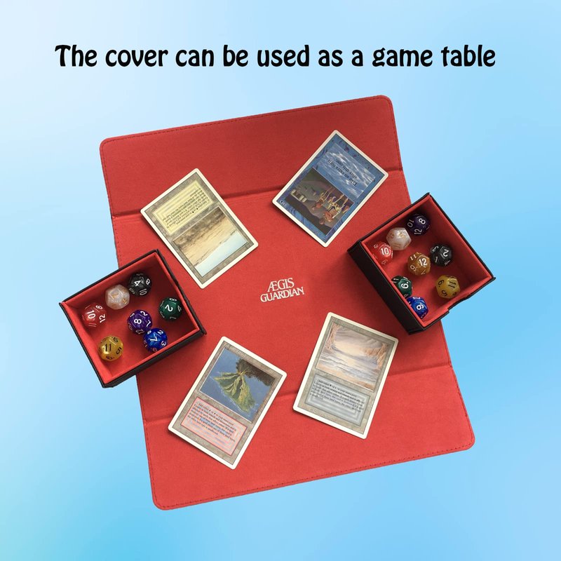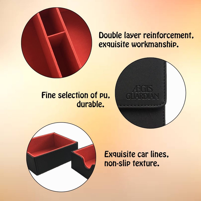 AEGIS GUARDIAN Commander Deck Box Hold 600+ Sleeved Cards, Card Deck Box with 2 Dice Tray Fit for TCG MTG CCG, Holds up to 4 Card Storage Boxes, PU Leather Strong Magnet, Black and Red