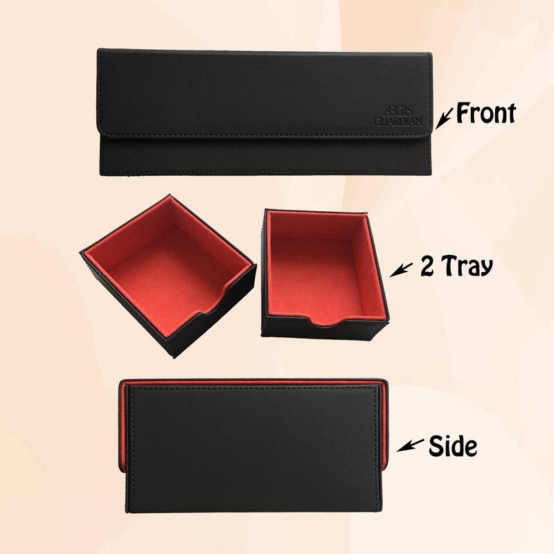 - Accessory Compartments : We designed 2 card storage boxes for accessory storage built right next to the playmat row. This spacious compartment can store dice, minifigures, token tokens and more.