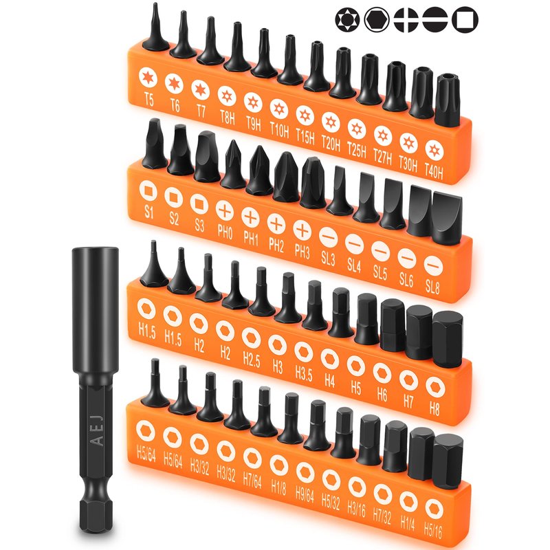 AEJ 49-Pack Screwdriver Bit Set, Hex Head Drill Bit Set, Torx Square Slotted Phillips Bit Set with 1/4" Bit Holder, 1/4 Hex Shank, S2 Steel, 1"Long