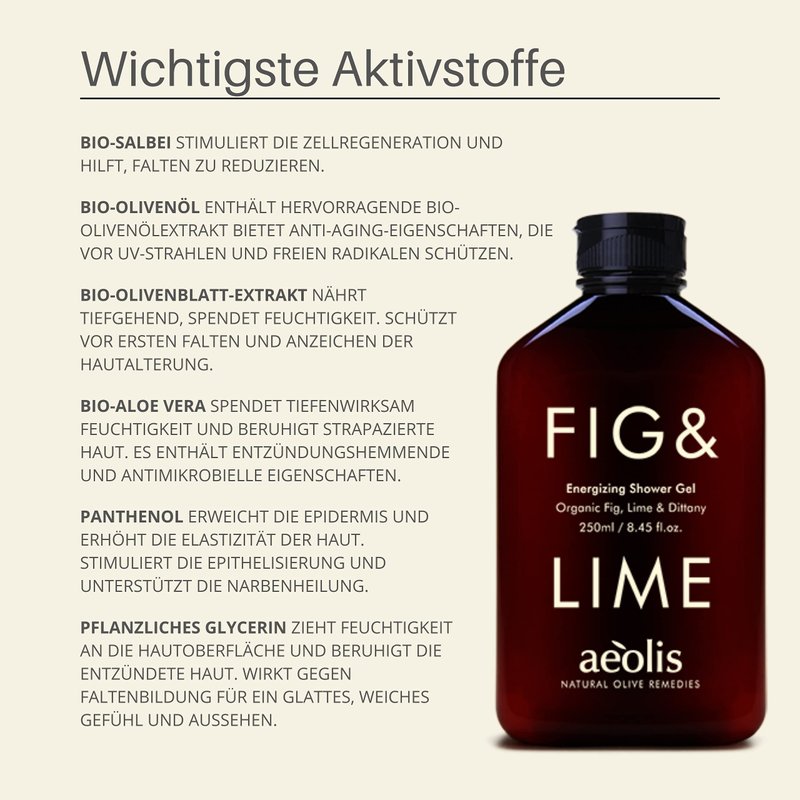 AEOLIS Hydrating Care Shower Gel with Jasmine and Natural Aloe Vera, All-Natural Olive Oil Extract from Greece, Cleanses and Moisturizes, for Men and Women, 100 mL (Fig, Lime, and Dittany, 8.45 Fl Oz)
