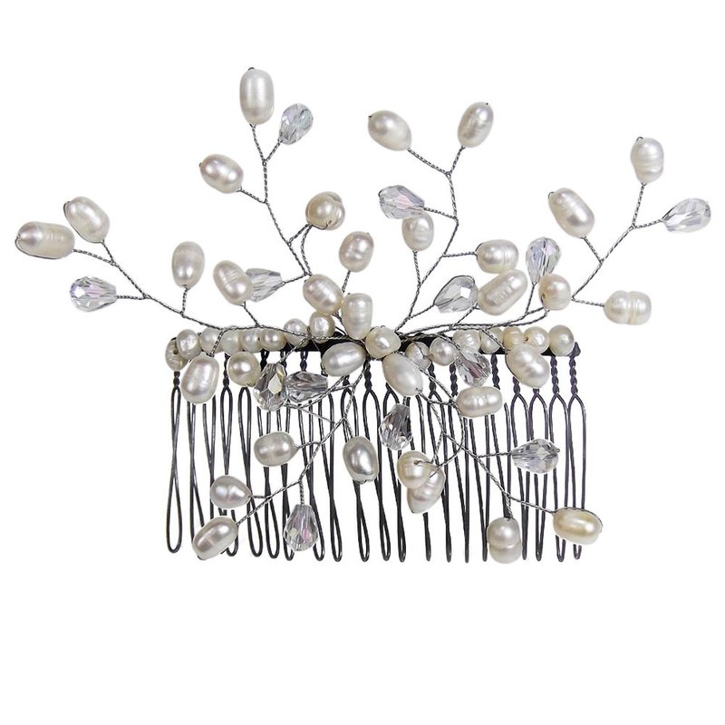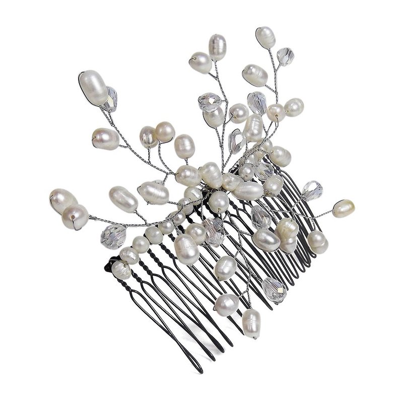Fashioning petals of cultured freshwater pearls and fashion crystals, Lai creates a hair comb that exudes feminine elegance. This bridal piece was handcrafted in Thailand. PLEASE NOTE: The handcrafted nature of this product will produce minor differences in design, sizing and weight. Variations will occur from piece to piece, measurements may vary slightly.