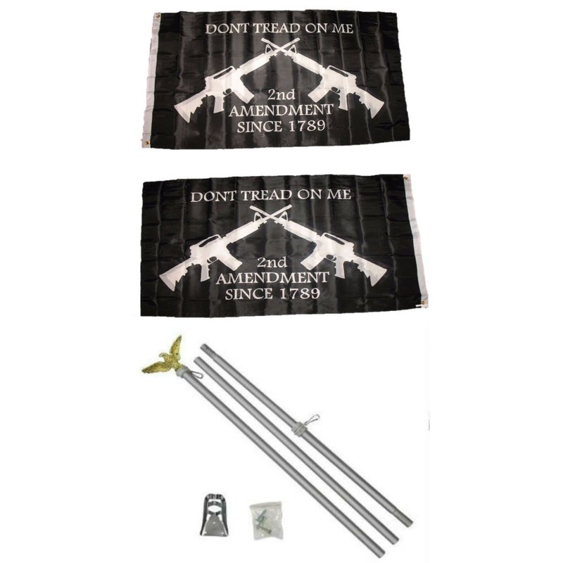 2nd Amendment Crossed Rifles Black 3'x5' Polyester 2 Ply Double Sided Flag With 6' Aluminum Flag Pole Kit With Eagle Topper
