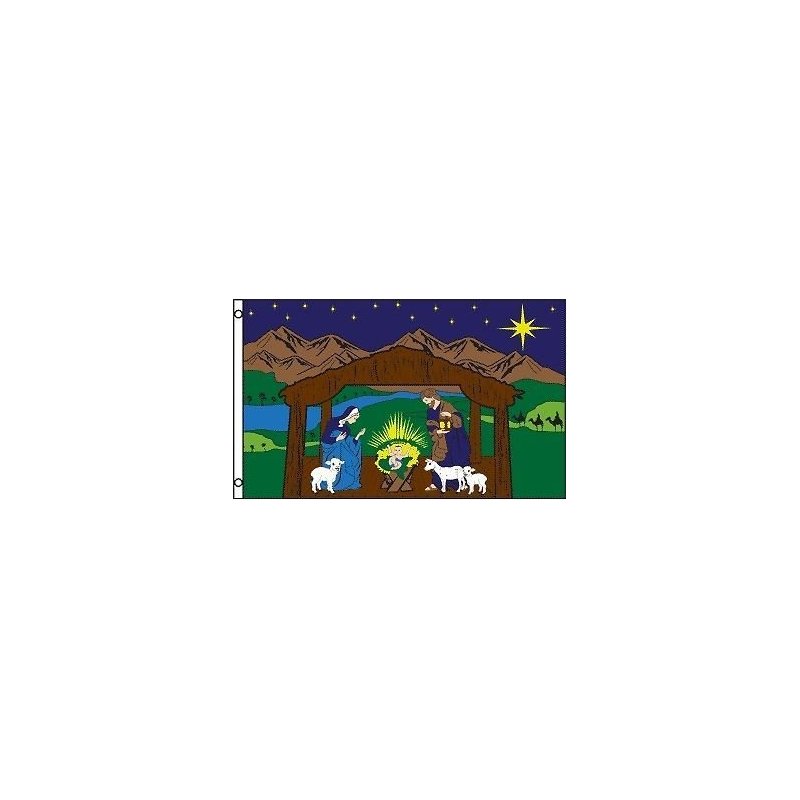 AES X'Mas Thanksgiving Custom Nativity Scene Christmas Holiday Wall Flag House Decor Banner 3'x5' Ft Polyester Grommets Indoor/Outdoor