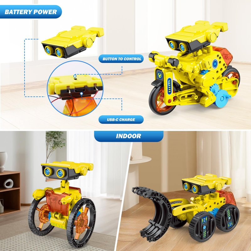 - Easy to Assemble: This educational building toy include a clear instruction manual that guides how to assemble, it is easy for 8+ years old boys and girls to build various robots by following the instructions step by step. Parents can accompany children as they assemble and experience the fun of building.