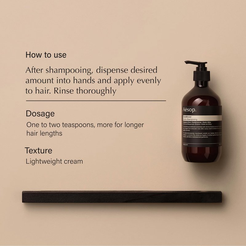A nourishing conditioner enriched with amino acids to smooth, soften and hydrate most hair types, including fine, fragile and coloured. Leaves hair fragrant and refreshed. Like all Aesop products, this formulation was created with meticulous attention to detail, and with efficacy and sensory pleasure in mind.