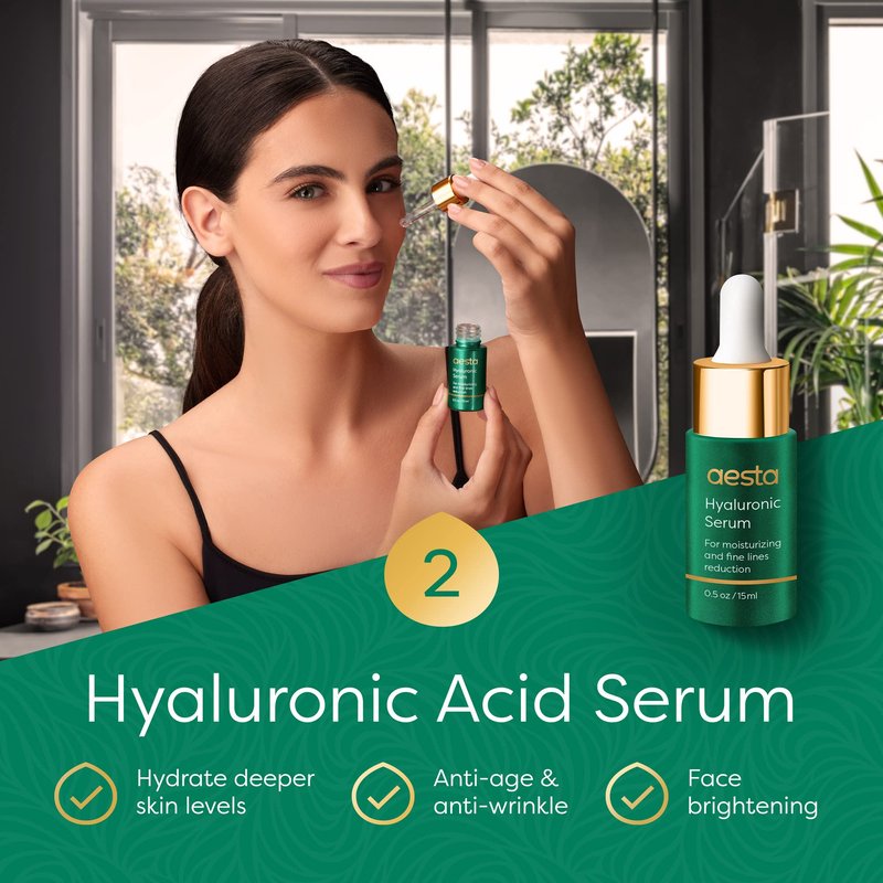 - A POWERFUL HYALURONIC ACID SERUM. The anti aging serum deeply hydrates the skin, reduces wrinkles, and brightens the face. Both the hydrating serum and the green face mask fit all skin types (oily, dry, combination, normal, prone to irritation and clogged pores).