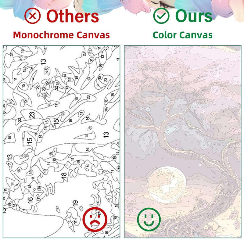 - 【High-tech Canvas and Acrylic Paint】: Our adult digital oil paint comes with a smooth and clean waterproof canvas with clear outlines for easy identification. Non-toxic and harmless acrylic paints provide vivid colors, dry quickly, and provide strong coverage.