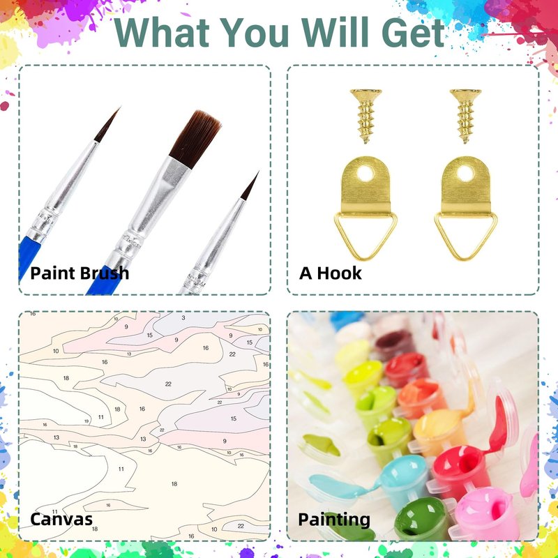 - 【Great present】: Surprise your loved ones with these oil painting by numbers. The oil painting by numbers set is a great gift for birthdays, Christmas, New Year's Day, Thanksgiving, anniversaries, etc. It not only cultivates creativity, but also releases stress for adults.