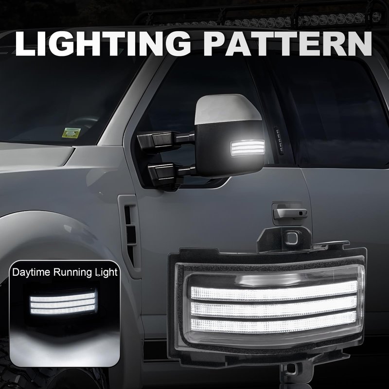 - 【Compatibility】Aexploer Side Tow Mirror Turn Signal LED Lights Compatible with F150 2015-2022 (ONLY Compatible with Towing Mirror Models) | Compatible with F250 F350 F450 Super Duty 2017-2022.OEM Part Number:FL3Z13B374CA,FL3Z13B375CA,FO1328104, FO1329104.