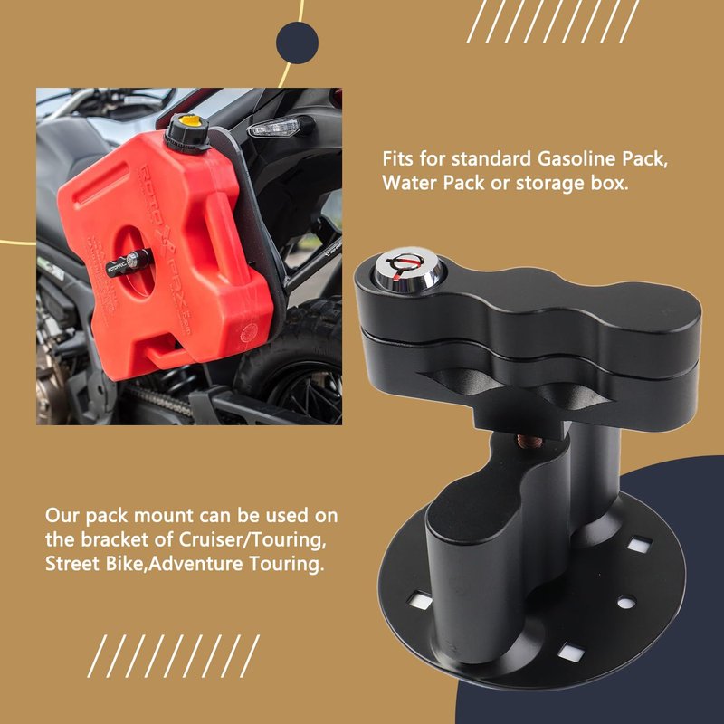 - [COMPATIBILITY] The dLX pack mount fits for standard Gasoline Pack, Water Pack or storage box. Our pack mount can be used on the bracket of Cruiser/Touring, Street Bike, Adventure Touring