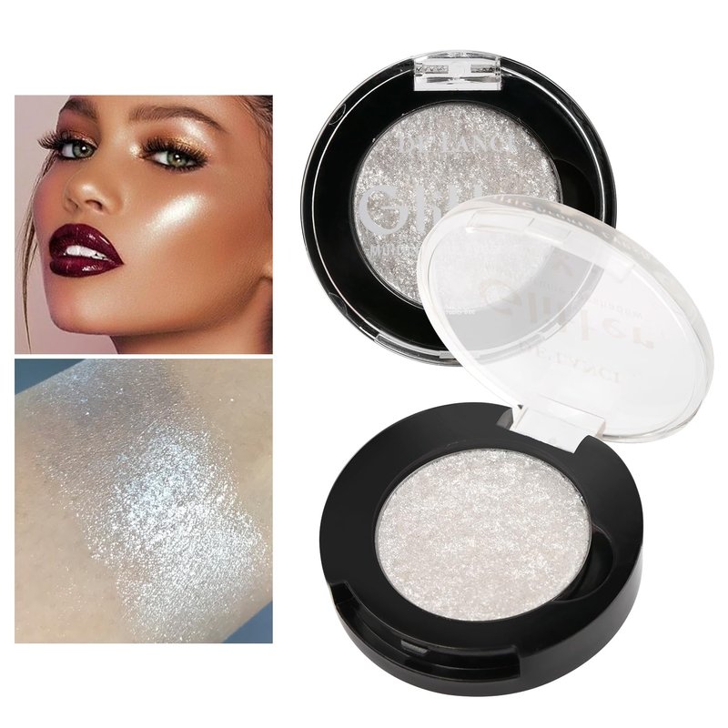 Afflano Shimmery White Glitter Eyeshadow, Highly Pigmented Single White Eyeshadow Sparkly Eye Makeup, Long Lasting Holographic White Frost Glitter Eyes Highlighter Makeup, Cruelty Free,Talc Free, 1A