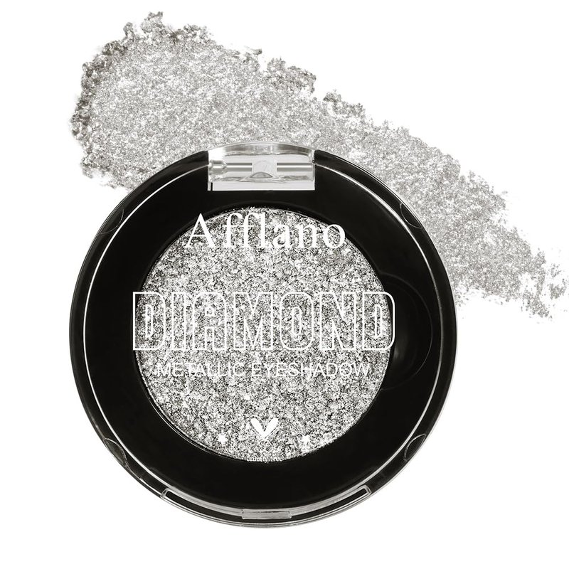 Afflano Silver Glitter Eyeshadow Palette Super Pigmented, Single Parkle Shimmer Silver Eyeshadow Palette, Long Lasting Blendable Neutral Eye Look, for All Skin Metallic Glitter Eyes Bling Makeup
