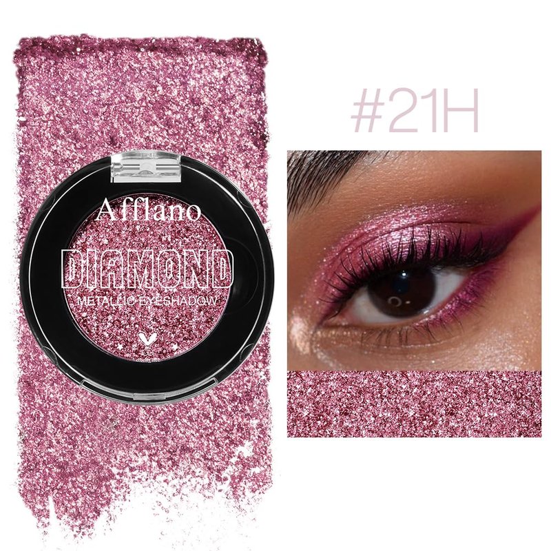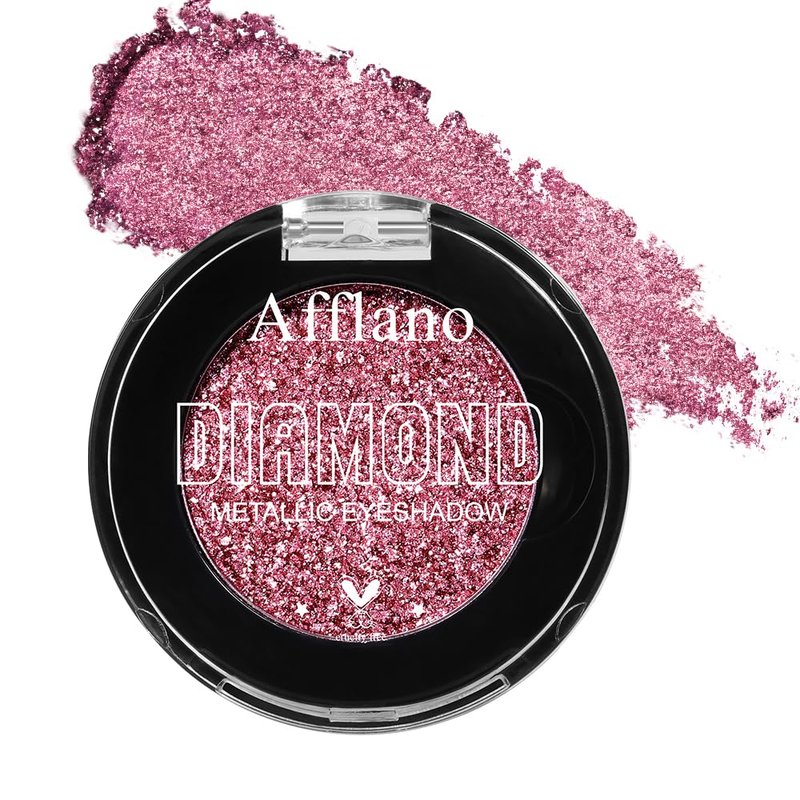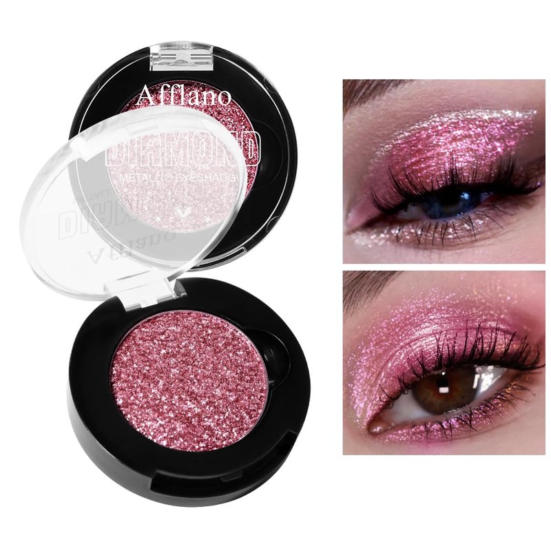 Afflano Single Pink Glitter Eyeshadow Palette, Sparkle Champagne Pink Rose Glitter Eyes Look, Highly Pigmented, Long Lasting Diamond Metallic Eye Shadow Pallet for Girl Women Neutral Eye Look, 21H