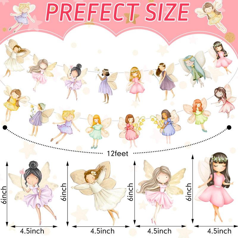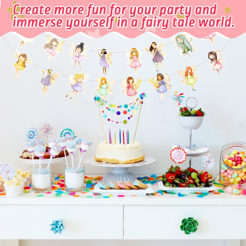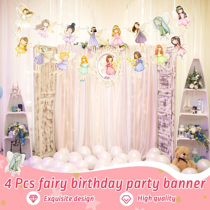 - Exquisite Design and Convenience: our fairy birthday decorations come with pre strung, no need time to assemble or DIY; You can easy to hang the banners on where you like, and they also boast an exquisite design that complements the fairy tale party supplies