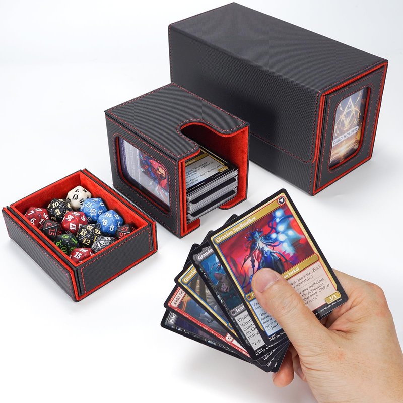 - Effortless Organization and Portability: Thanks to the Commander card slot, you can easily glance at the box's contents without opening each box individually. It's designed for easy transportation, allowing you to bring two separate decks, even for different games, wherever you go. Whether you're into MTG, PTCG, or another TCG, our storage solution ensures effortless organization and portability for your gaming collection.