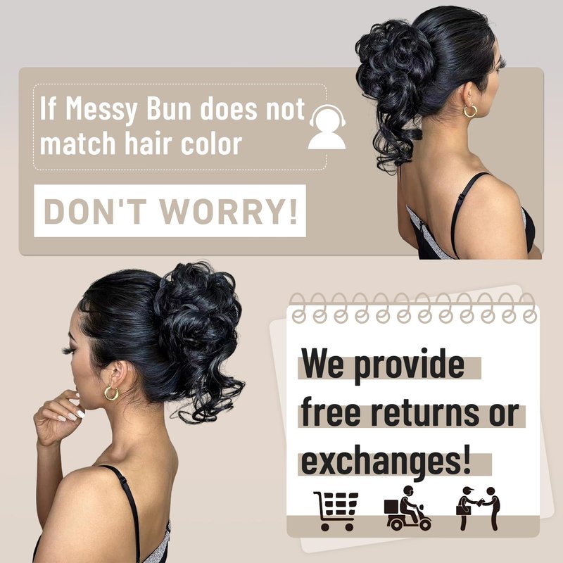 - 【High Quality Material】Our messy bun hair piece is made of high-quality synthetic fibers, providing a realistic appearance,soft touch like natural real hair,very suitable for adding volume and enhance your beauty. The hair bun extension boasts with a few loose strands of long wavy hair,when you wear it,looks gentle and temperamental.