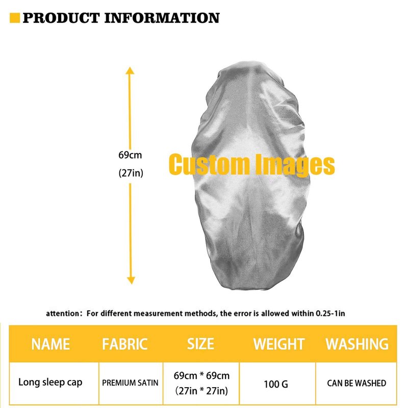 ●Package - 1pc Long satin sleep cap, 27"/69cm long.