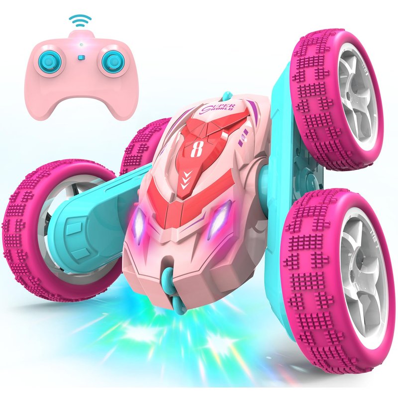AFUNX RC Stunt Cars, Remote Control Car Double Sided 360° Flip Rotating 4WD 2.4Ghz Rechargeable Car Toy with Headlights For Outdoor & Indoor for 6-12 years old Kids Girls Boys Birthday Xmas Gift, Pink