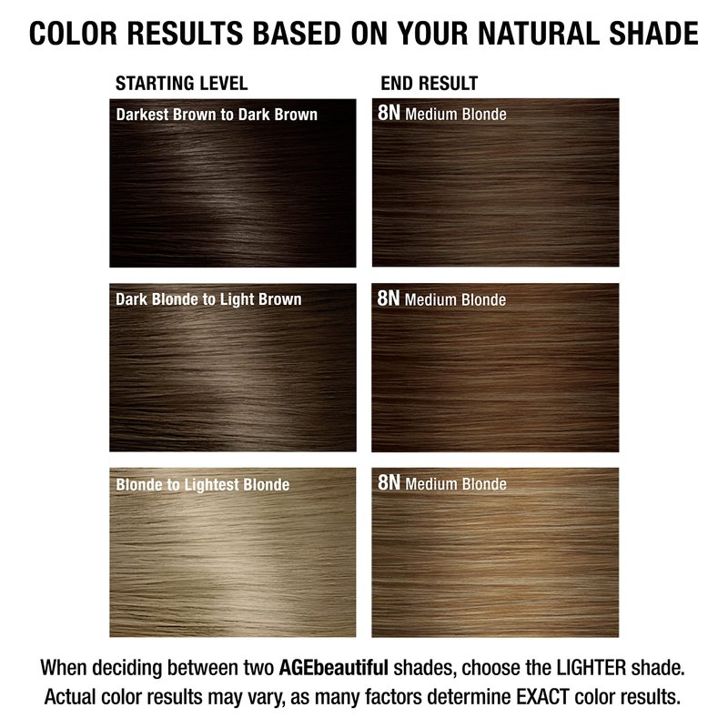 AGE beautiful Permanent Hair Color Dye Liqui Creme | 100% Gray Coverage | Anti-Aging Haircolor | Biotin for Thicker, Fuller Hair | Professional Salon Coloring | 8N Medium Blonde
