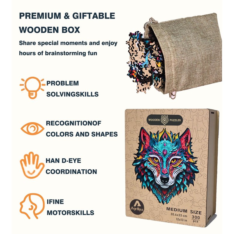 Ageliya Wooden Puzzles for Adults Wolf, Wood Puzzles Adult 300 Pieces 12x13in, Unique Shaped Puzzles, Challenge Wooden Puzzle Great Gifts for Puzzle Lovers, Grandparents, Parents, Family Game