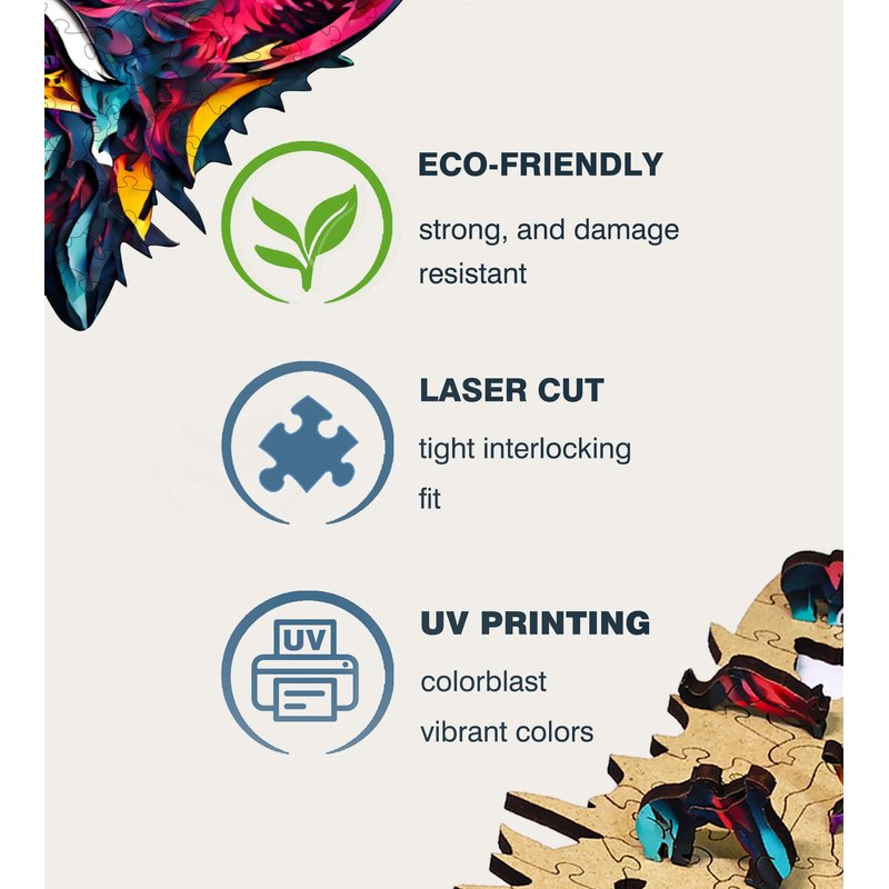 Introducing the Rich and Vibrant Colors Unique Shaped Wooden Puzzle Wolf, the perfect challenge wooden puzzles for adults who appreciate high-quality craftsmanship and intricate designs. This stunning puzzle features a mesmerizing image of a majestic wolf, brought to life with rich and vibrant colors that are sure to capture your attention.