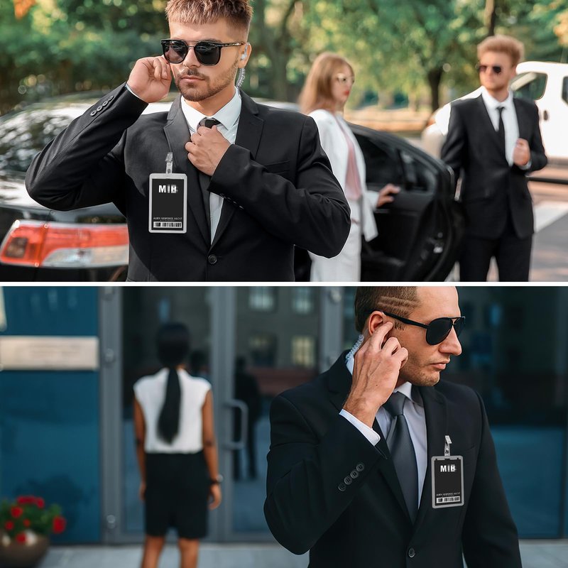 - Agent Costume Set: You will get 1pcs black novelty ID badge, 1pcs secret service earpiece. The badge holder is personalized with its humorous design. Leave behind the simple, stereotypical card clips, our fashionable decorative badge prop that adds a touch of personality to your attire
