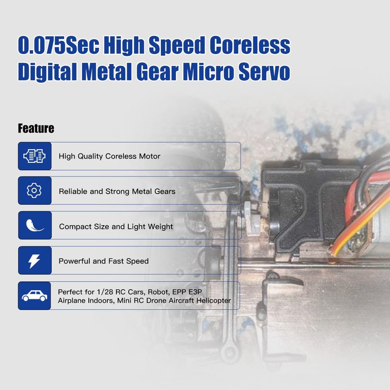 AGFRC Sub-Micro RC Steering Servo-Motor - Upgrade Metal Case Titanium Gear 0.080Sec High Speed HV Mini Servo for 1/14 1/18 1/24 RC Cars Planes (B13DLS)