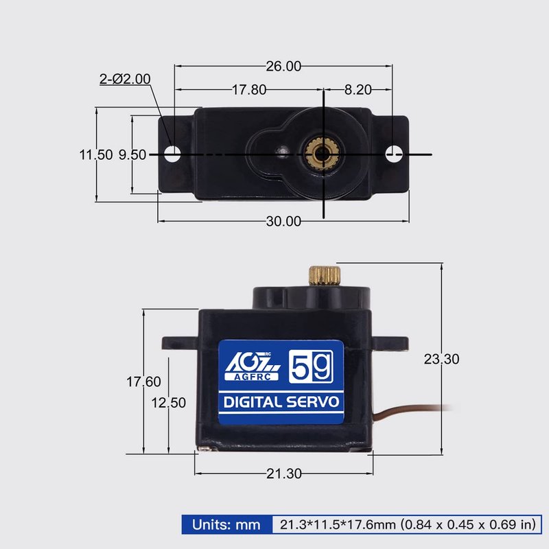 - Operating Voltage: 4.8-6.0V; Size: 22.8*12*29.4mm (0.90 x 0.47 x 1.16 in); Weight: 17g