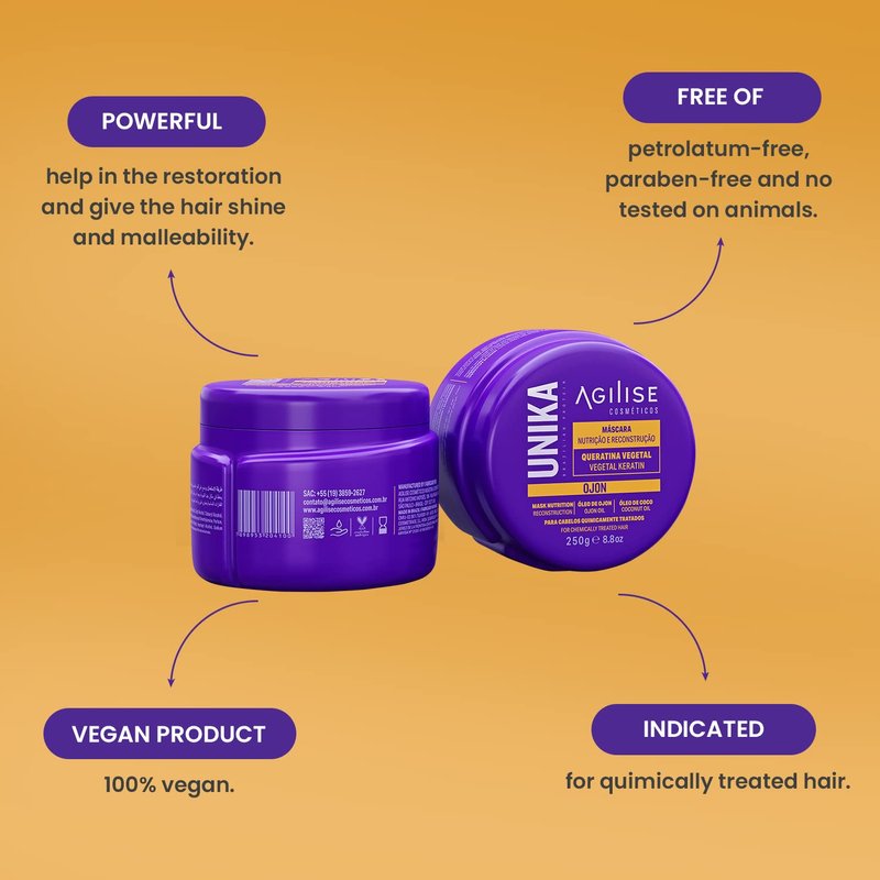 agilise Unika Ojon Home Care Hair Mask - Chemically Treated Hair Care, Anti Frizz Hair Products for Women, Sulfate Free Mask - Vegetal Keratin, Coconut Oil, Ojon Oil, VEGAN - 8.8oz/250g
