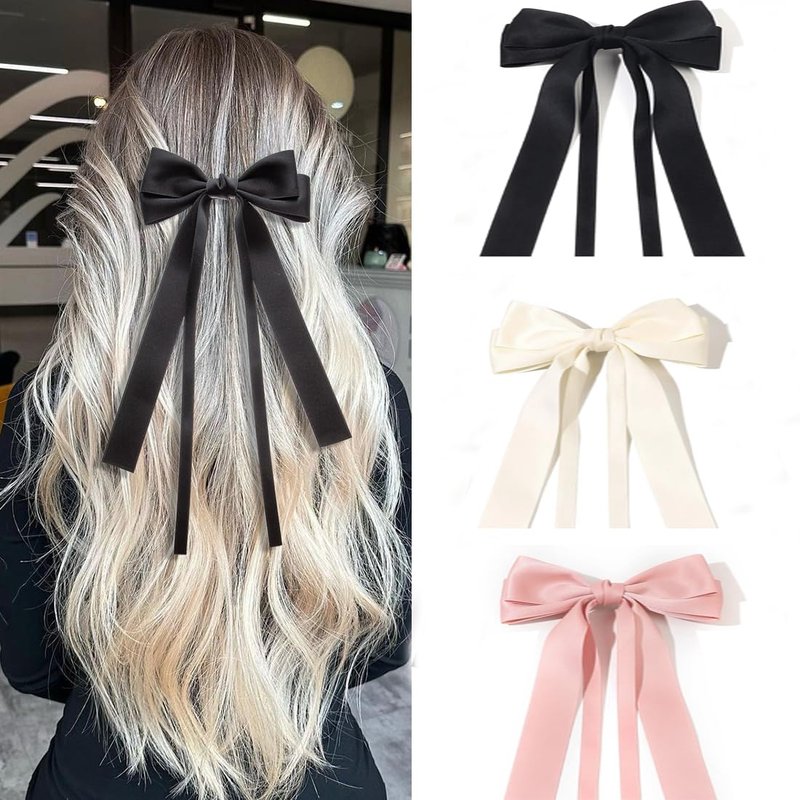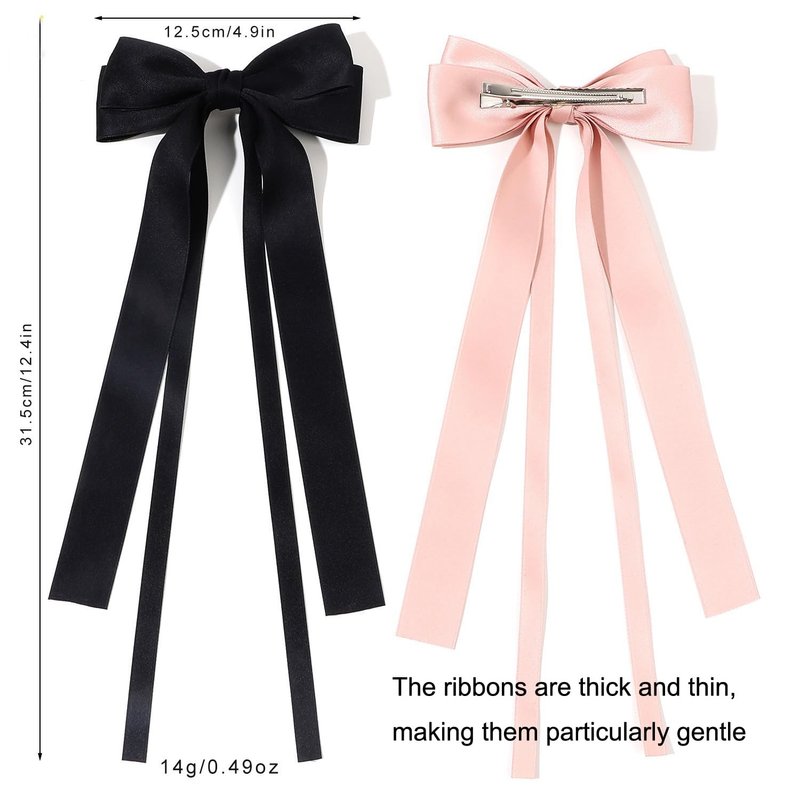 • 【Hair Clips with Long Tail】 Satin big hair bow with long tail and comfortable hair clasp will create your best stylish and romantic look! They're super silky and the clip is big enough to use on adult hair/hairstyles. It will flutter in the wind, which makes the your hair look more gentle and elegant.