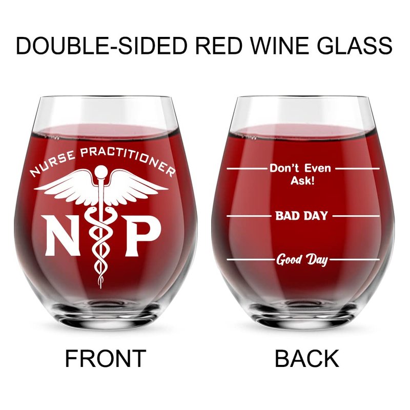 AGMDESIGN Funny Two Sided Good Day Bad Day Don't Even Ask NP Nurse Practitioner Wine Glass, Gift for Doctor, Medicine, Assistant, Physician, Nurse, Students, Graduation Gifts for Men Women