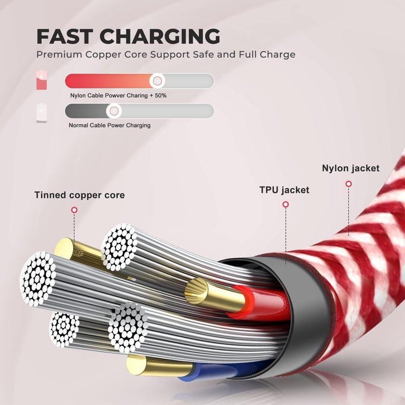 AGOZ USB C cables are built with a braided nylon jacket. Chew-proof phone charger. These anti-tangle Type C cables are created with durable materials that provide enhanced strain relief. A sturdy connector lets you charge your phone while playing a game or watching a video. Support FAST charging