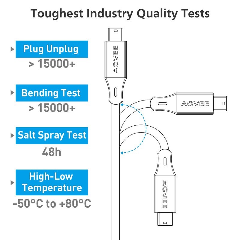 ⭕[10X More Durable Than Standard Cables] Strict quality inspection standards, fine appearance details, refuse to be shoddy. Each Agvee USB Cable model passed the toughest industry tests: