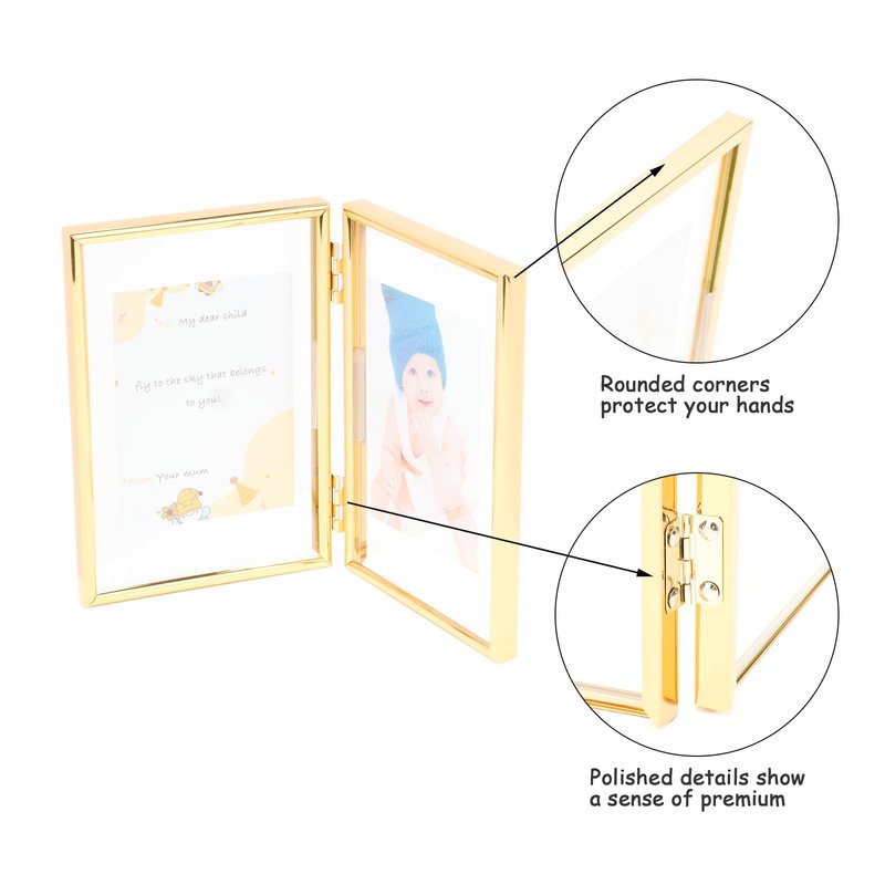 AhaGo Folding Double Frame, Gold Floating Picture Frame with Hinge, 4"×6" for 4"×6" 3"×5" 2"×4", Vertical, Real Glass, Tabletop Use, Classy For Christmas, Wedding, Birthday, Home or Office Décor