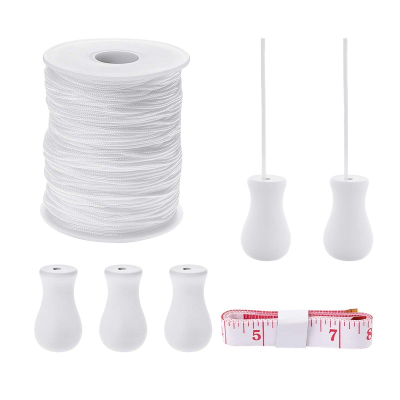 - Size: Braided nylon lift shade cord kit has 100 yards of white woven shade roller shade, 5 pieces of white wood pendants and a tape measure from 1 to 60 inches, with plenty of accessories, perfect for replacing and repairing shades and blinds.