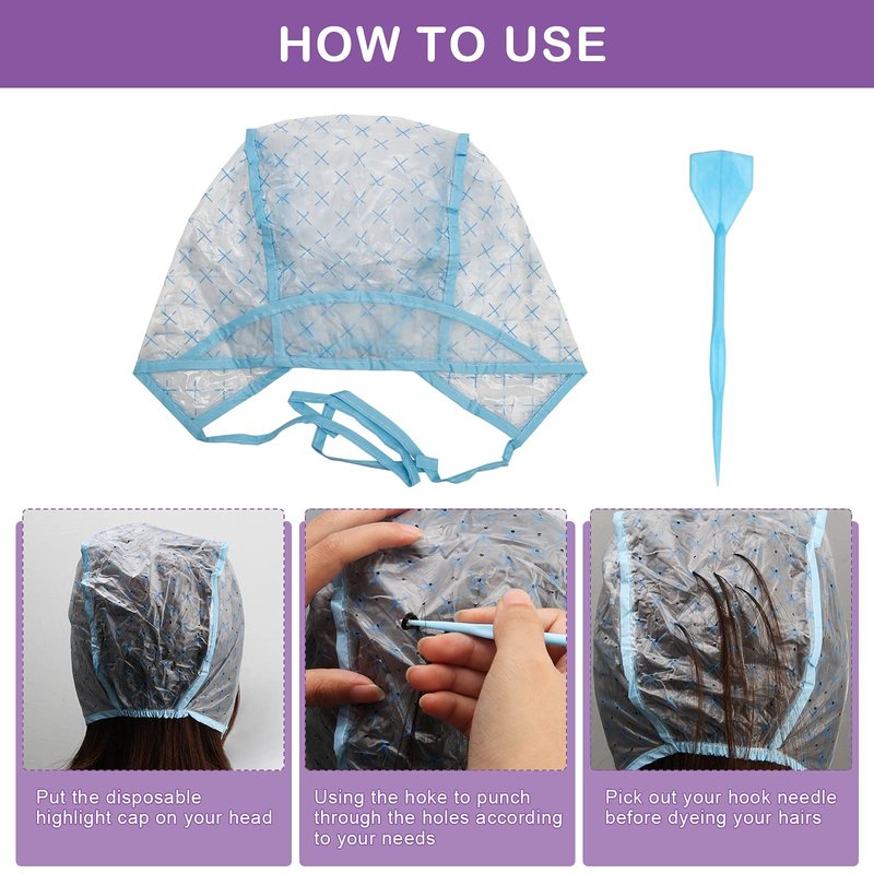 - 【Clear hair tinting cap】-The hair dyeing cap has many small round holes and is equipped with a crochet hook, which is convenient for you to hook out the highlighted part of the hair, allowing you to dye beautiful hair