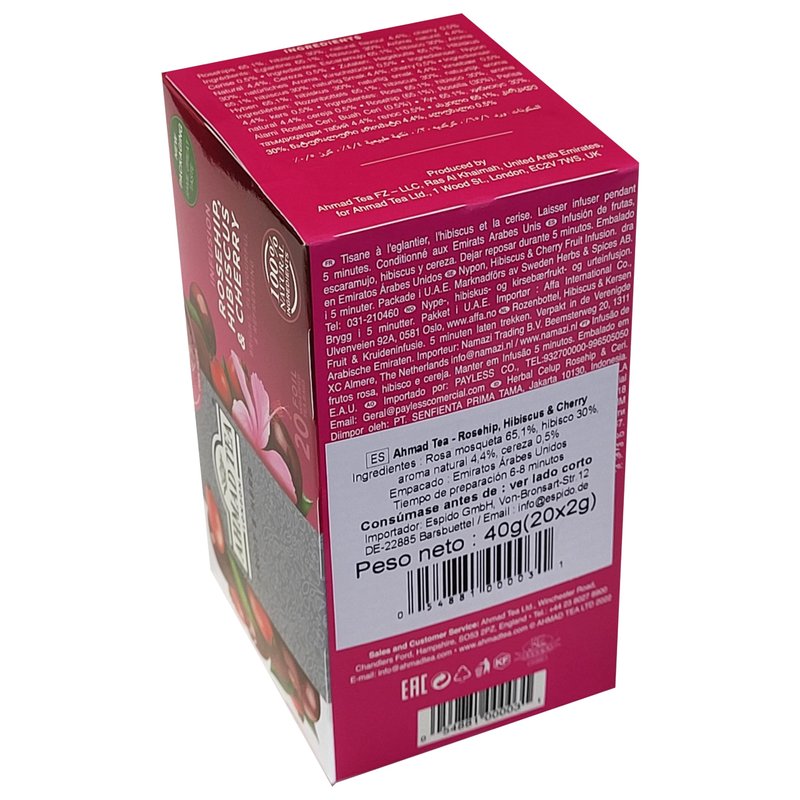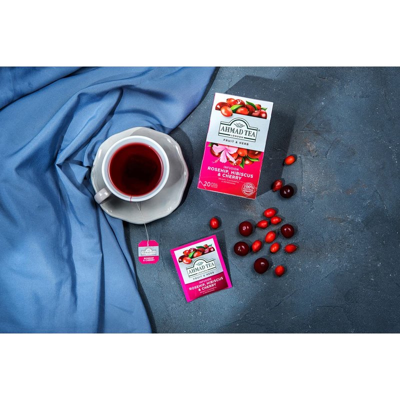 - DELICIOUS & SATISFYING FLAVOR – Ahmad Tea earned 22 Great Taste Awards, Rosehip, Hibiscus, and Cherry Infusion being best-selling herbal tea. A delicious fruity and floral brew.