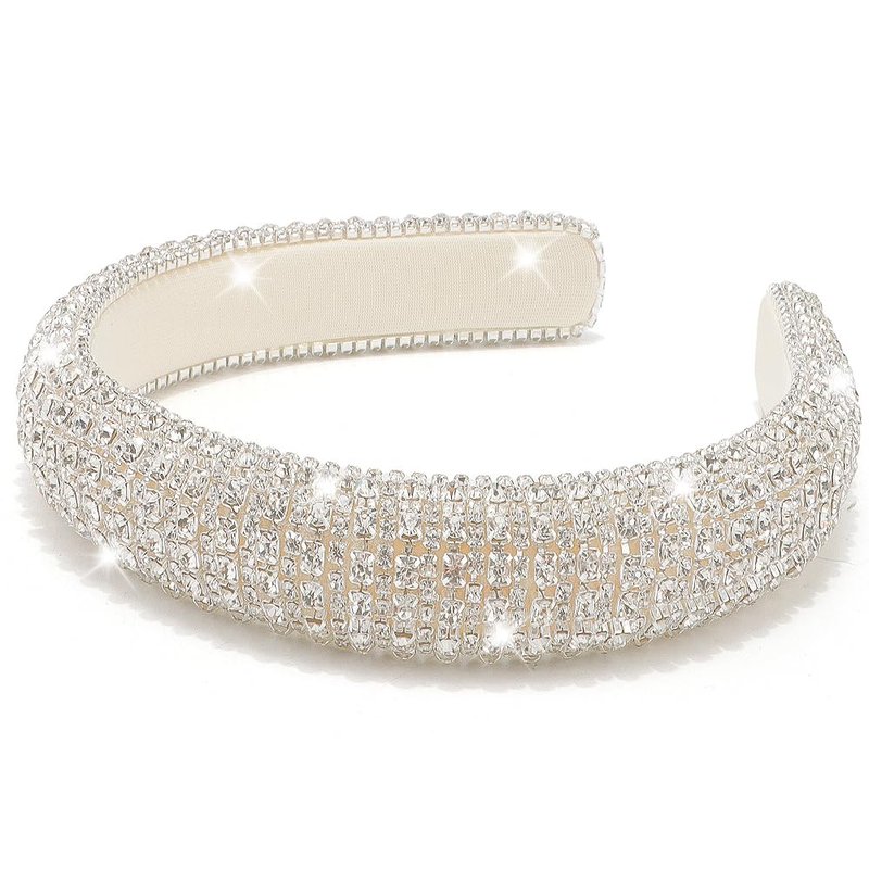 AHONEY Rhinestone Headband for Women Girls, Hair Bling Crystal Glitter Sparkly Diamond Padded Headband Fancy Jeweled Headpiece Holiday Hair Accessories Birthday Gifts (White)