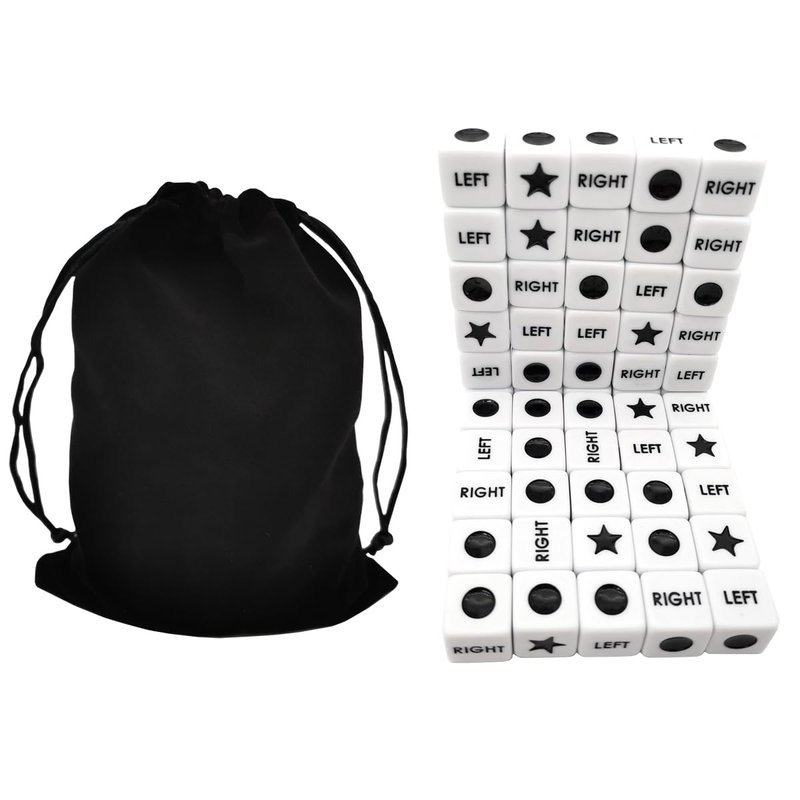 50 Pieces Left and Right and Center Dice Only 50 Dices ,16mm Standard Size, Easy to Grip.
