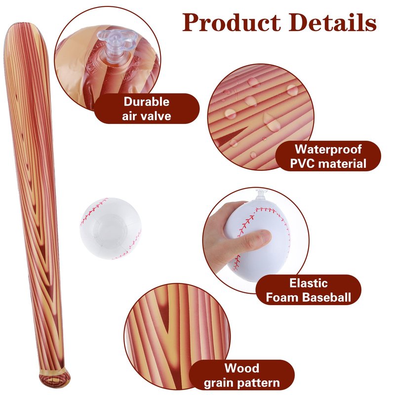 - Inflatable Baseball Ball and Bat Set: in the package, there are 1 x inflatable baseball and 2 x inflatable bats, allowing to play indoors and outdoors, suitable for baseball birthday party favors supplies